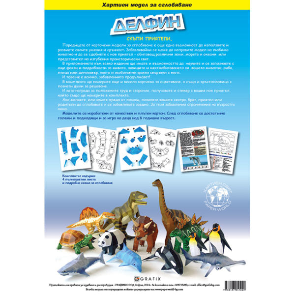 3D моделът за сглобяване “Делфин” има както занимателна, така и образователна цел. Сглобяването на модела помага по един занимателен начин да се развиват сръчността, последователността, логическото и пространственото мислене у децата.