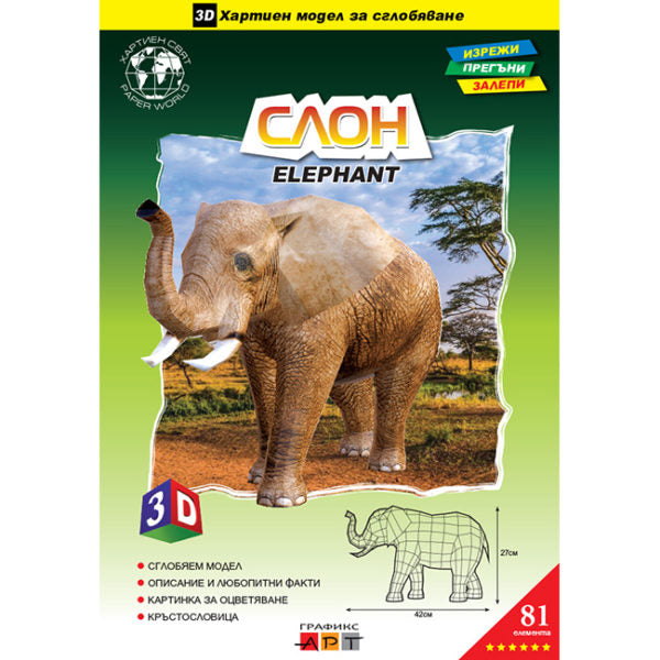 3D моделът за сглобяване “Слон” има както занимателна, така и образователна цел. Сглобяването на модела помага по един занимателен начин да се развиват сръчността, последователността, логическото и пространственото мислене у децата.