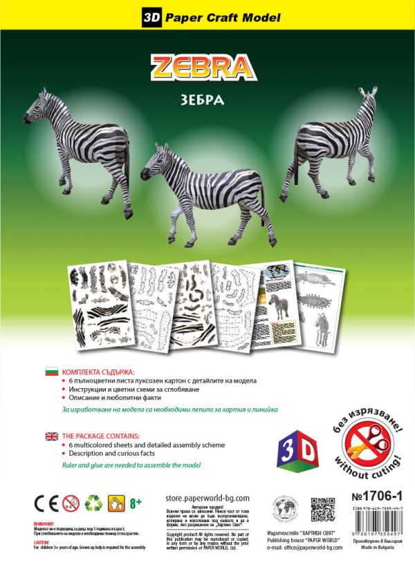 Хартиеният 3D модел за сглобяване “Зебра” има както занимателна, така и образователна цел. Сглобяването му помага по един занимателен начин да се развиват сръчността, последователността, логическото и пространственото мислене у децата.